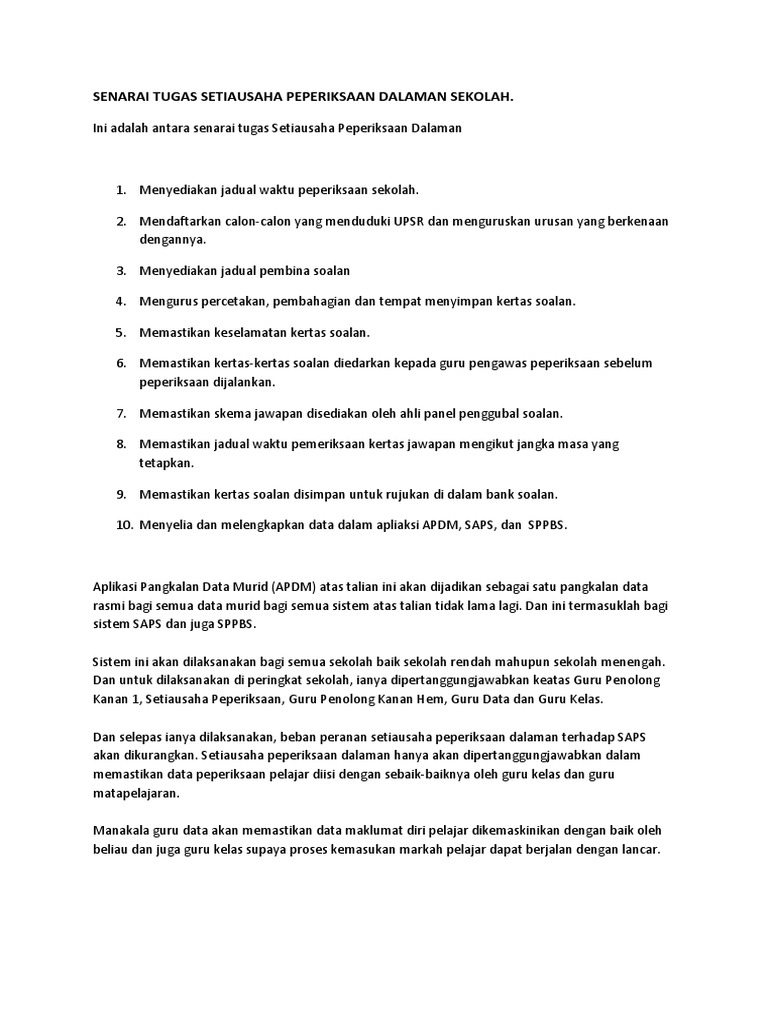Senarai Tugas Setiausaha Peperiksaan Dalaman Sekolah Pdf